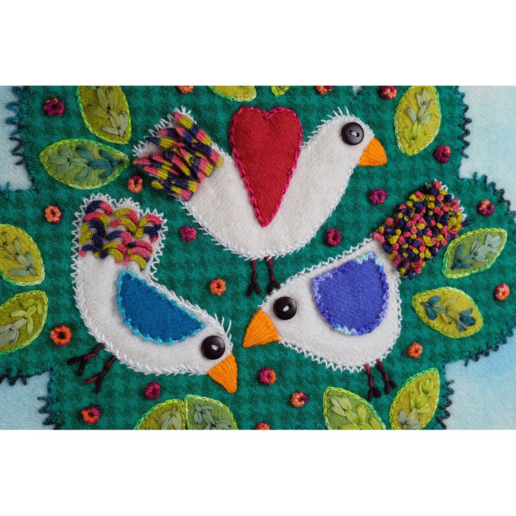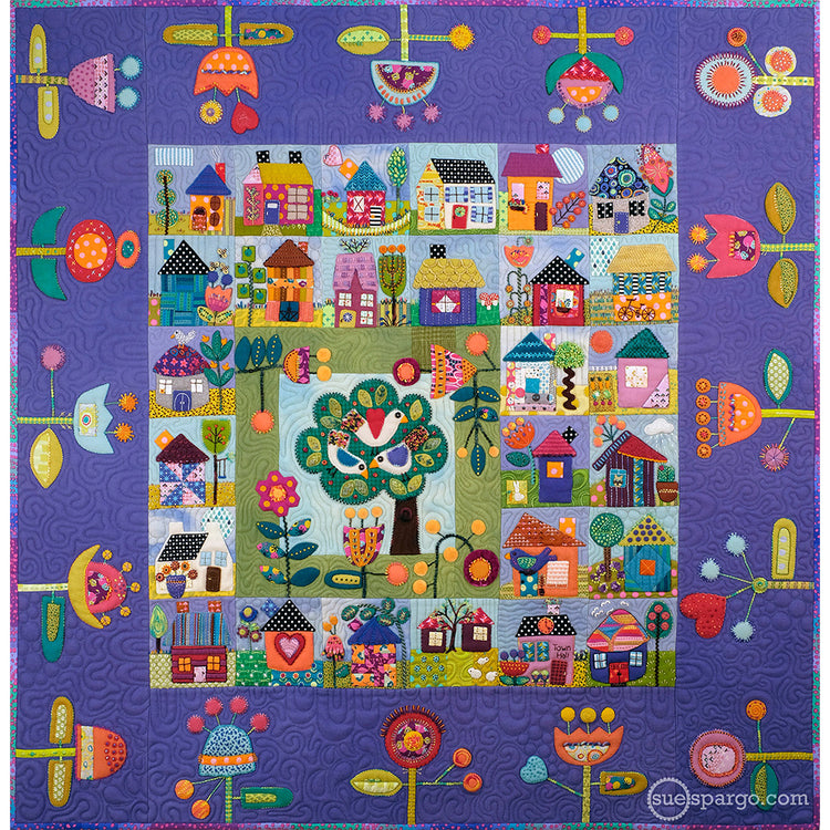 Sue Spargo's Homegrown Quilt Book has something for every sewer. Work on wool applique, layering, and embroidery with this quilt. It finishes to 45-1/2" square and is broken down into 28 easy to complete blocks. Each chapter/block has a supplies list, detailed instructions, and full-color pictures to help you along. At the end of the Homegrown Books is a stitch key and block templates that will make assembly much more straightforward. As a bonus, you also get three bonus projects: Sunnyside Manor Pincushion, Peep Party Zip Bag, and Home Sweet Home Spool Sack. If you need help with the embroidery stitch instructions, it's recommended that you also purchase Sue Spargo's Creative Stitching Book (sold separately). The Homegrown Quilt Book is 169-pages and is a full color, softcover book.
