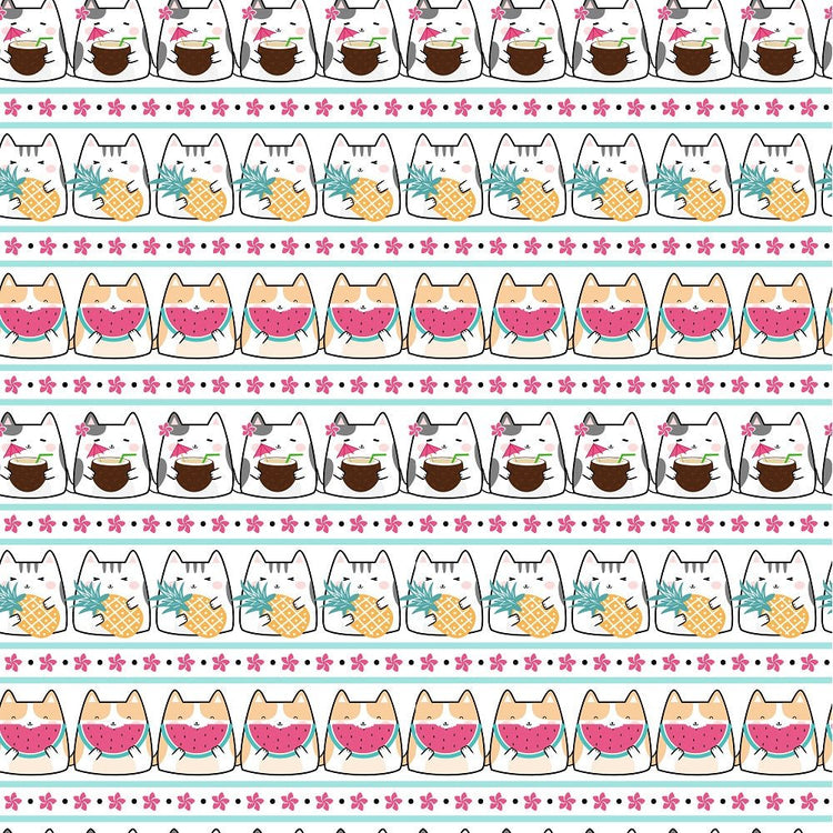 The Summertime Cats Border Fabric is part of the Summertime Cats Fabric Collection printed by Sew Creative Fabrics. Digitally Printed on 100% cotton.
