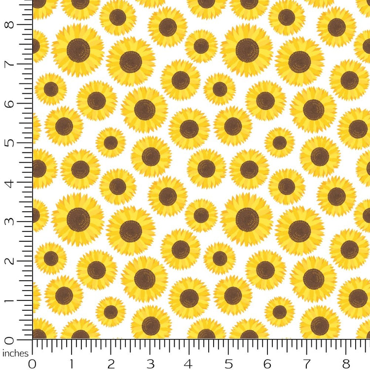The Sunflowers and Bees Allover Fabric is a part of the Sunflowers and Bees Fabric Collection printed by Sew Creative Fabrics. Digitally Printed on 100% cotton.