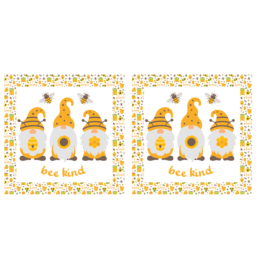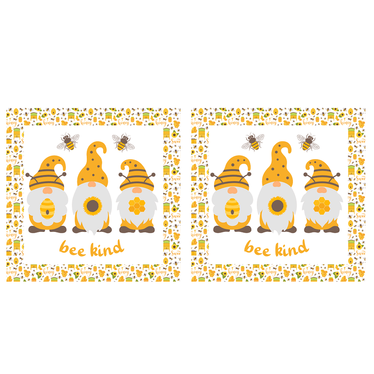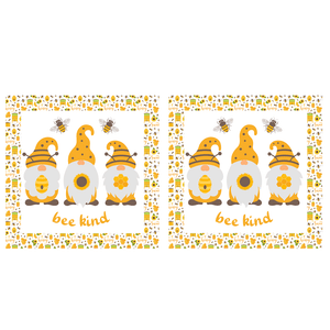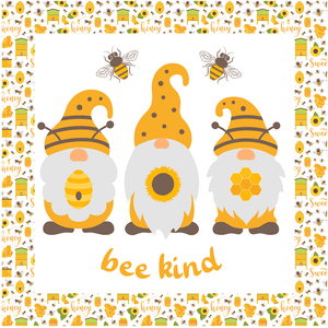 Sunflowers and Bees Bee Kind Gnomes Pillow Panels is a part of the Pillow Panels Fabric Collection printed by Sew Creative Fabrics. Our pillow panels are designed to be extremely simple to put together, some other brands do not provide a 1/4-inch seam allowance, we provide a 2-inch border. Each pillow panel contains 2 pillow panels side by side. You can use the second panel as backing or purchase a yard of Sunflowers and Bees Main Fabric to have the backing the same as the border print.