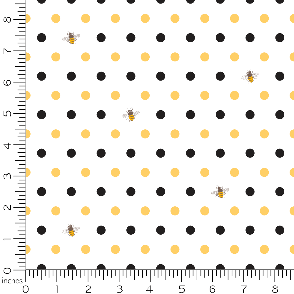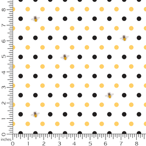 The Sunflowers and Bees Polka Dots Fabric is a part of the Sunflowers and Bees Fabric Collection printed by Sew Creative Fabrics. Digitally Printed on 100% cotton.
