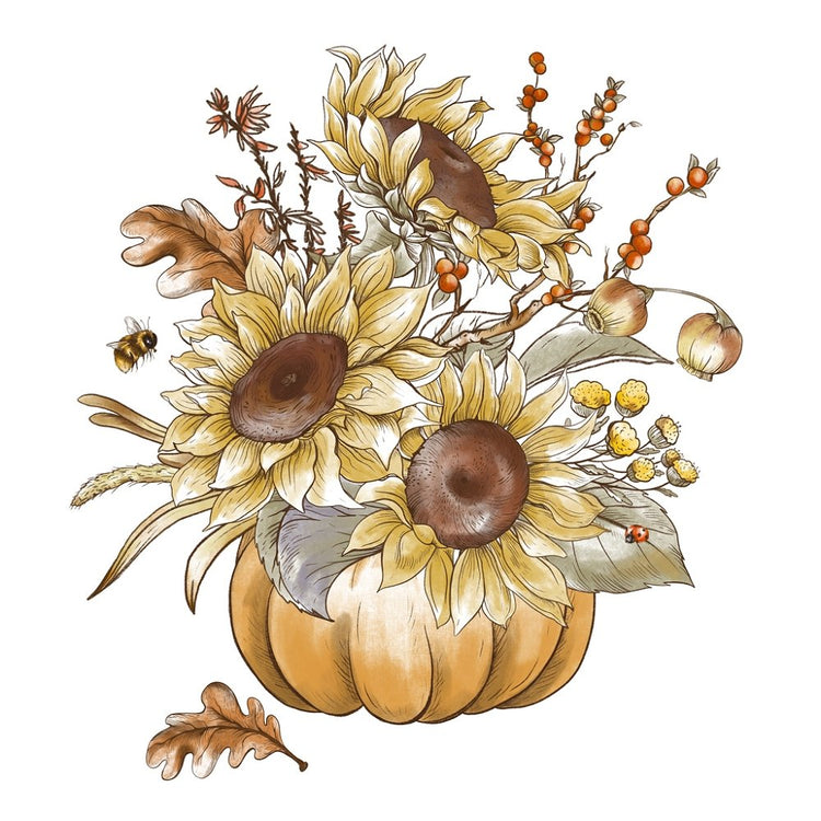 Sunflowers & Pumpkin Arrangement Fabric Panel
