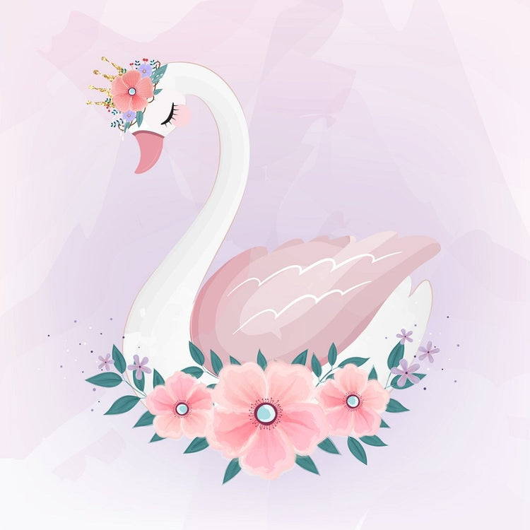 Swan Princess With Floral Bouquet Fabric Panel - Pink Details