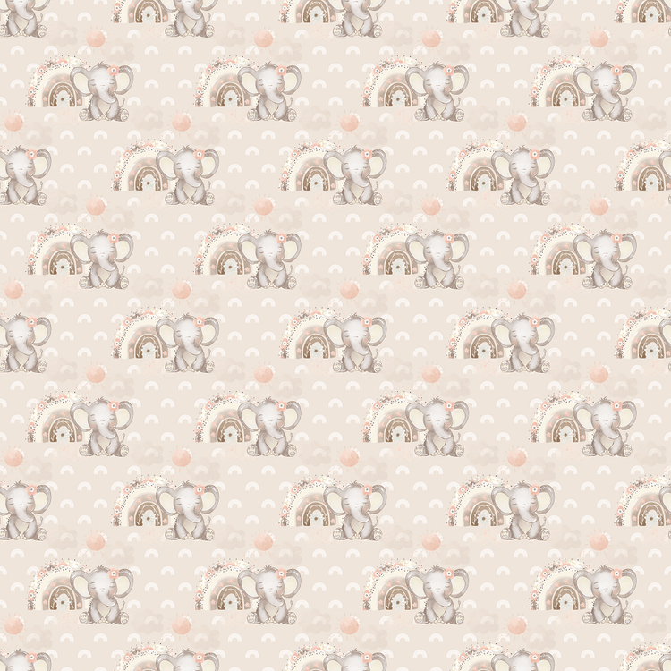 The Tan Sweet Baby Elephants & Rainbows Fabric is part of the Sweet Baby Elephant Fabric Collection printed by Sew Creative Fabrics. Digitally Printed on 100% cotton and measures 43-44" wide.