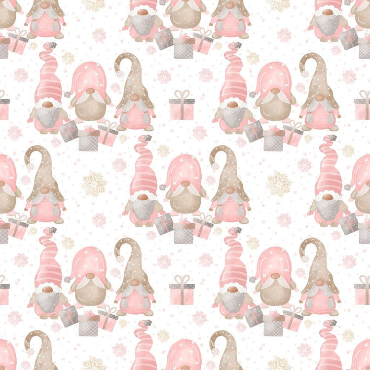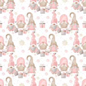 Sweet Christmas Gnomes Scene Fabric - White Details