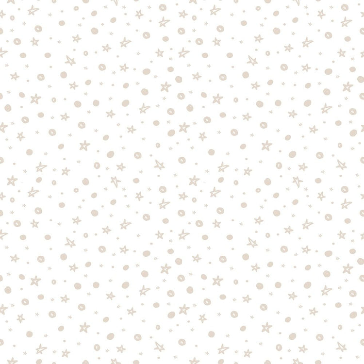 Sweet Christmas Gnomes Tan Stars Fabric - White Details