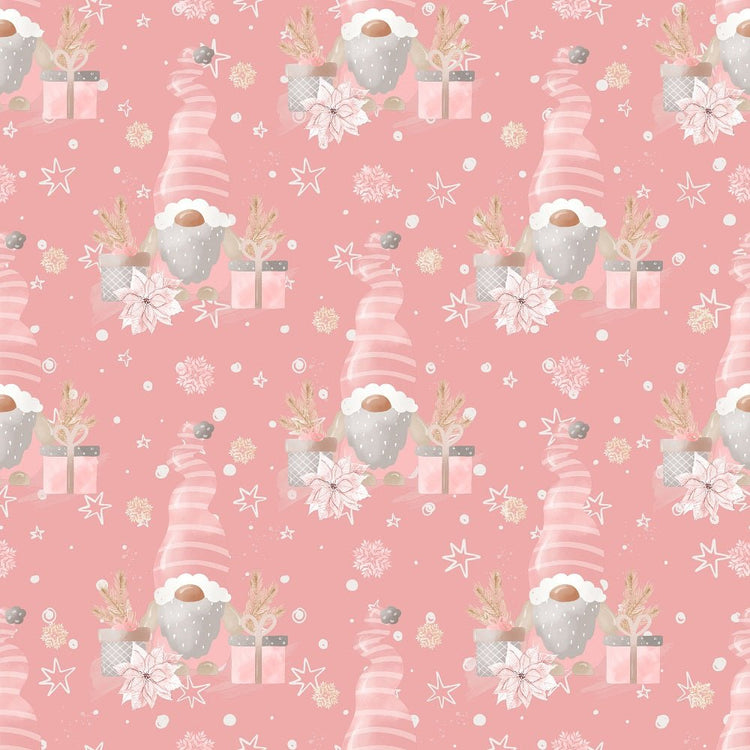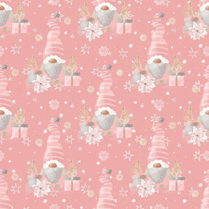 Sweet Christmas Gnomes with Presents Fabric - Dark Pink Details