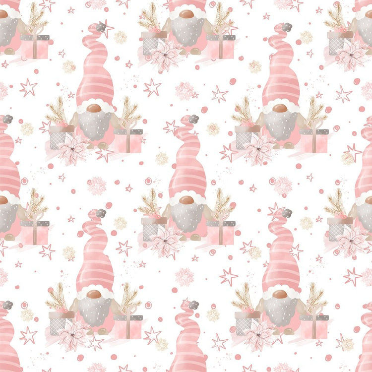 Sweet Christmas Gnomes with Presents Fabric - White Details