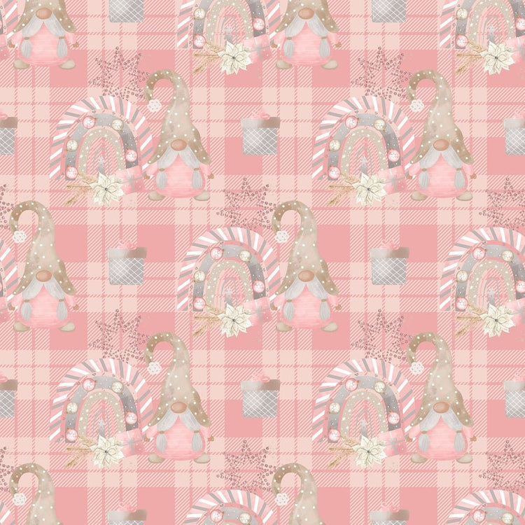 Sweet Christmas Gnomes with Rainbows Fabric - Pink
