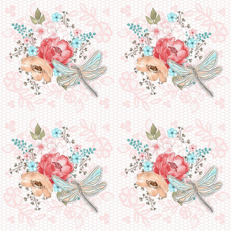 Sweet Dragonfly on Pink Lace Fabric Details