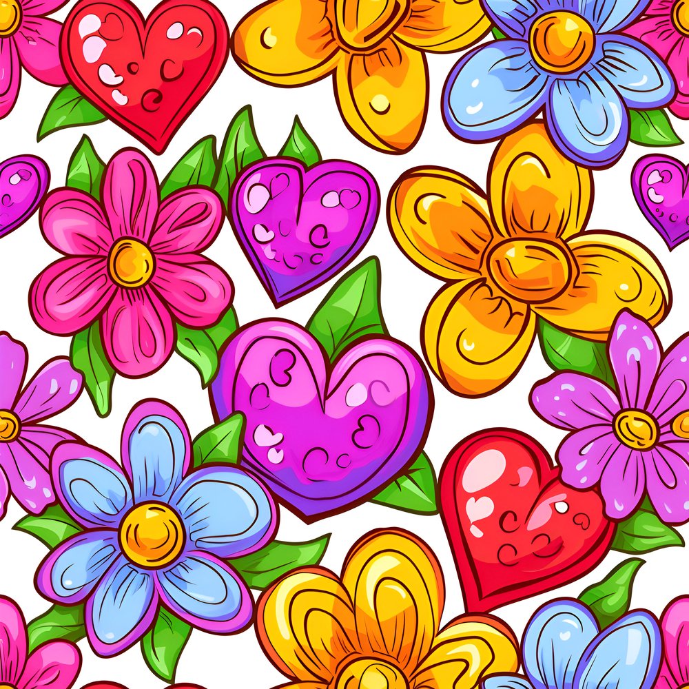 Sweet Floral Doodle Hearts Pattern #11 Fabric Details