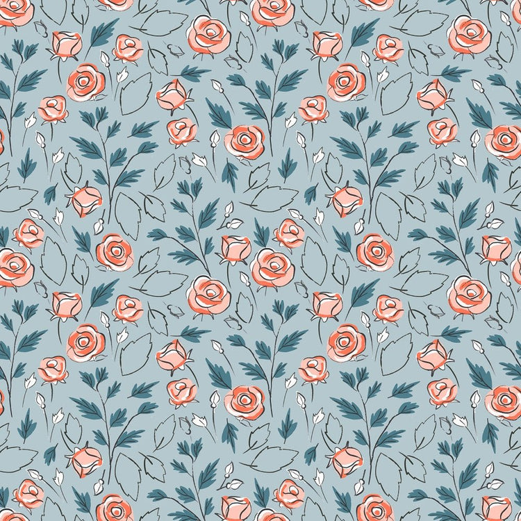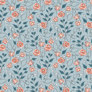 The Blue Sweet Like Roses Fabric is part of the Sweet Like Roses Fabric Collection printed by Sew Creative Fabrics. Digitally Printed on 100% cotton.