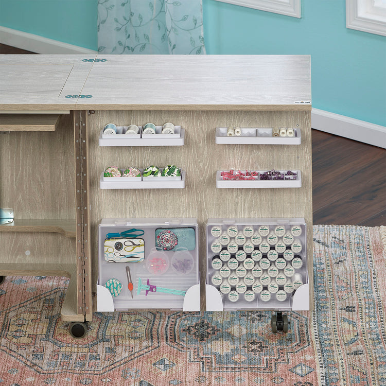 Choose a finish that complements your creative space with the Koala Eclipse’s elegant finish options — English White Ash or Grey Oak. Each finish is crafted with care to enhance both the beauty and durability of your sewing cabinet.