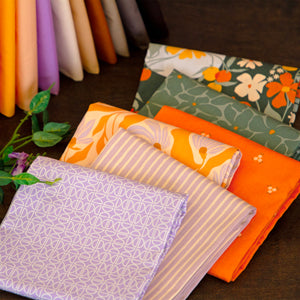 Channel summertime sweetness with AGF Studio's Tangerine collection! This delightful collection features playful retro motifs and charming florals in juicy oranges, peaches, and lavender hues—perfect for sewing projects that radiate sunshine and happiness! Designed by AGF Studio for Art Gallery Fabrics, Tangerine offers a fun mix of fabric types to bring your warm-weather creations to life.