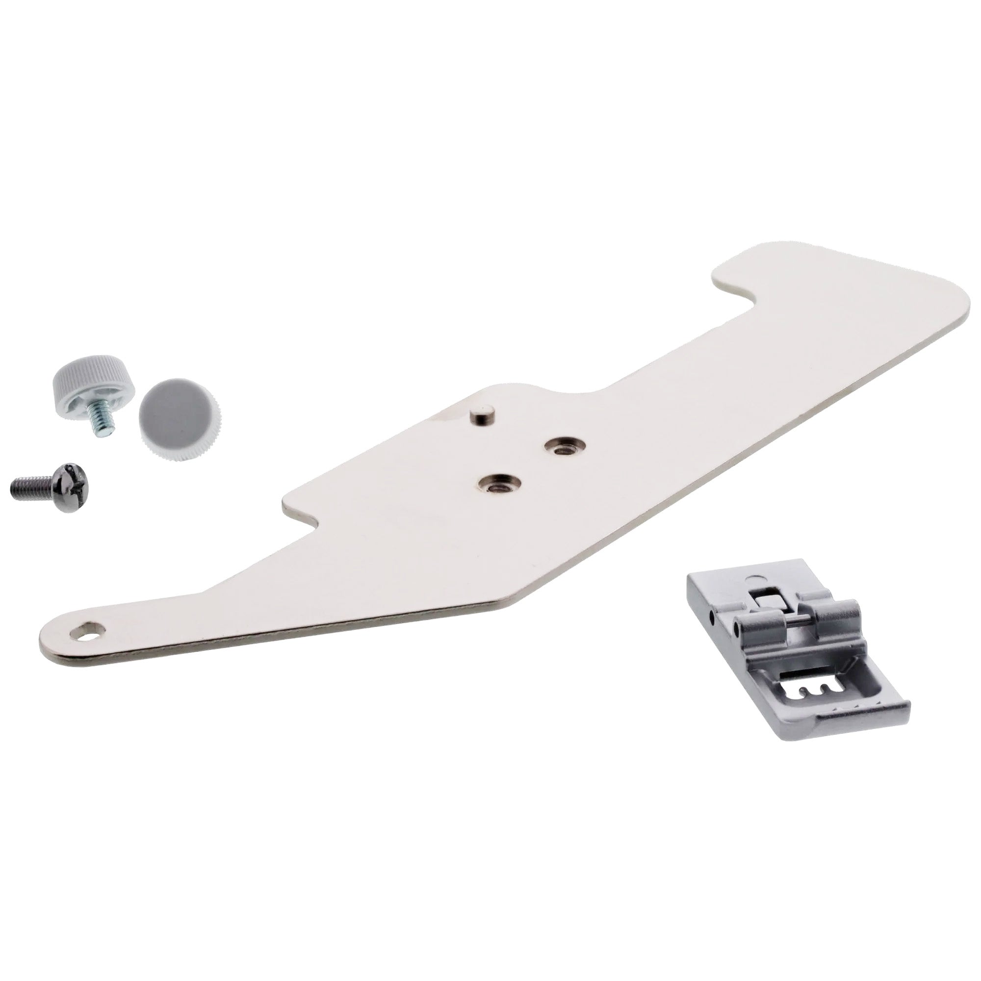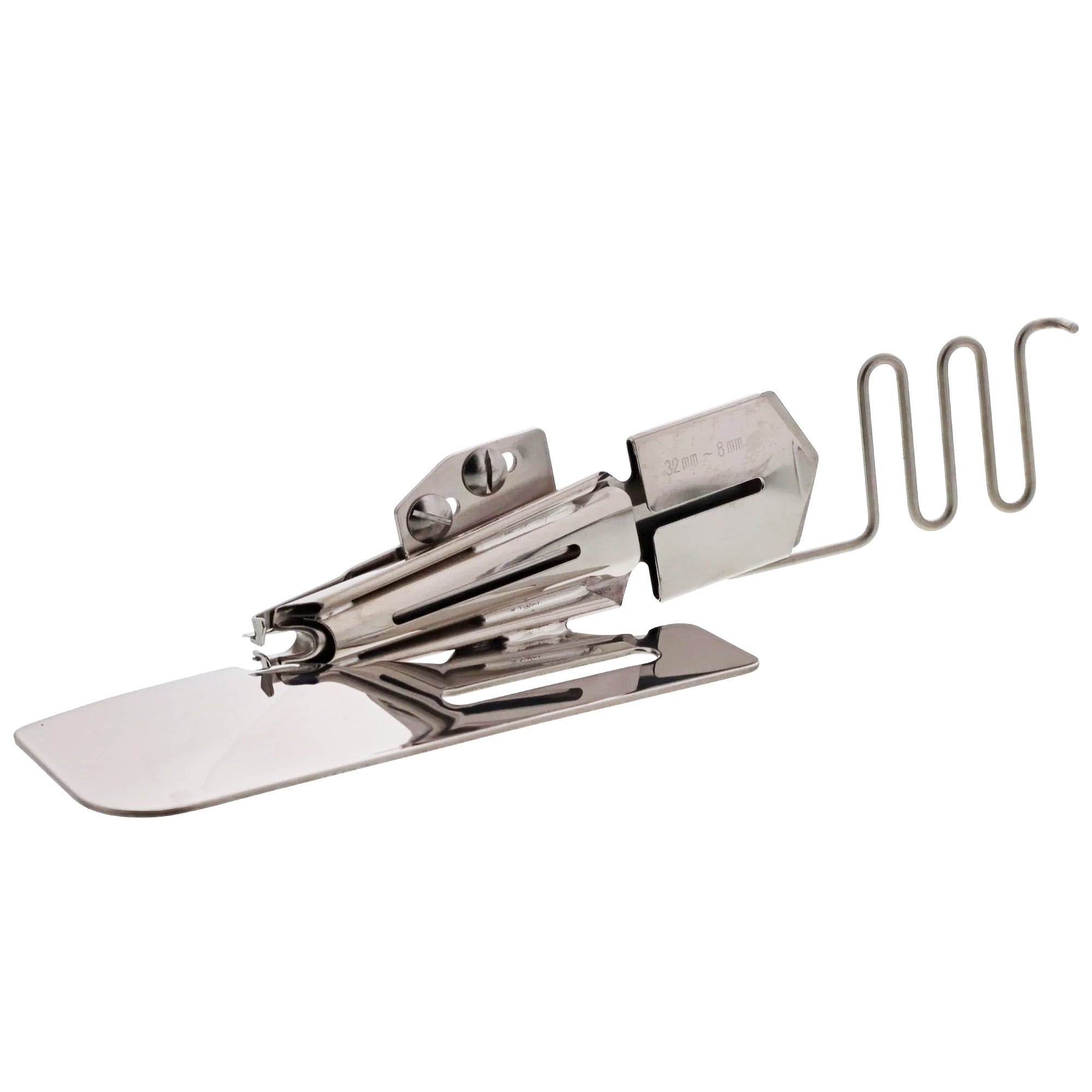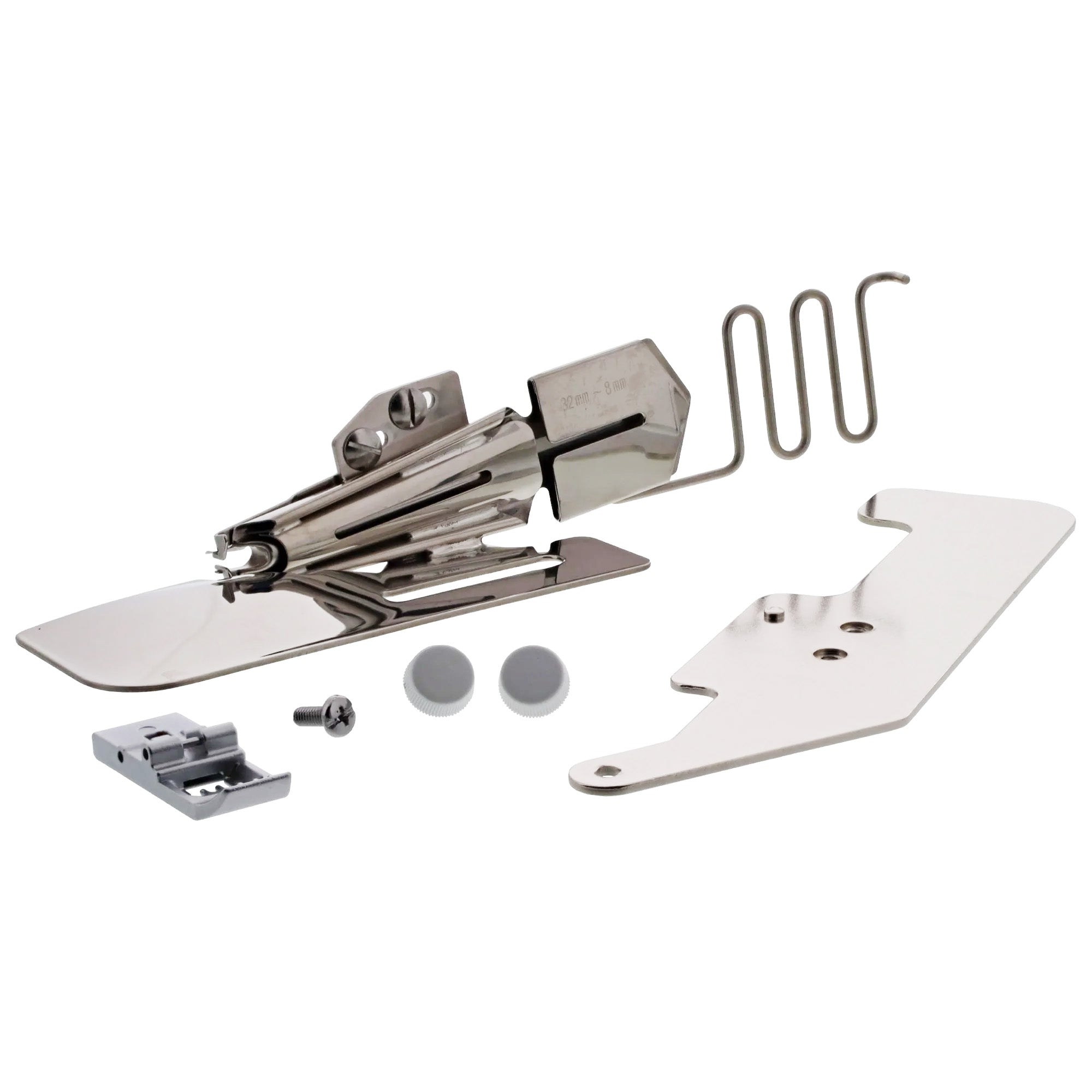 The Tape Binder Foot is the perfect accessory for quick and trouble-free binding, with a superior design based on industrial binding attachments. The foot comes with a guide attached to keep your foot aligned. The cone on the front of the fabric holder feeds and folds fabric for a ½" finished binding. Two upper screws on the binding allow you to adjust the fold of the fabric - set them at the same length for a straight stitch or set the bottom a bit further than the top for a blanket stitch.