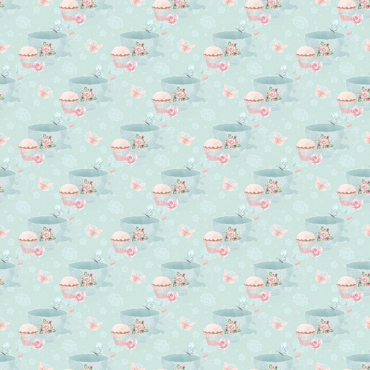 The Blue Tea Time Cups and Butterflies on Floral Fabric is part of the Tea Time Fabric Collection printed by Sew Creative Fabrics. Digitally Printed on 100% cotton.
