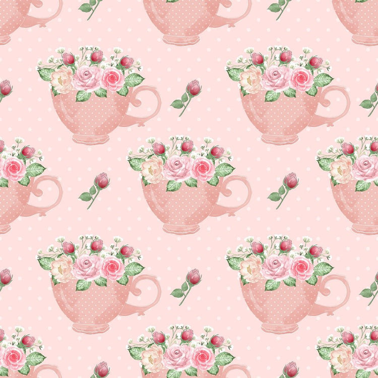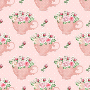 The Pink Tea Time Floral Cups Fabric is part of the Tea Time Fabric Collection printed by Sew Creative Fabrics. Digitally Printed on 100% cotton.