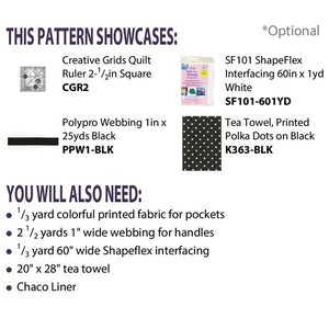 The number of adorable tea towels readily available makes the Tea Towel Tote Bag Pattern by Merry May a quick and easy project with infinite options. Shapeflex adds stability for the towels to hold the shape of the tote with considerable room for whatever you may be toting! The finished tea towels and webbing make it effortless to make multiples in an afternoon!