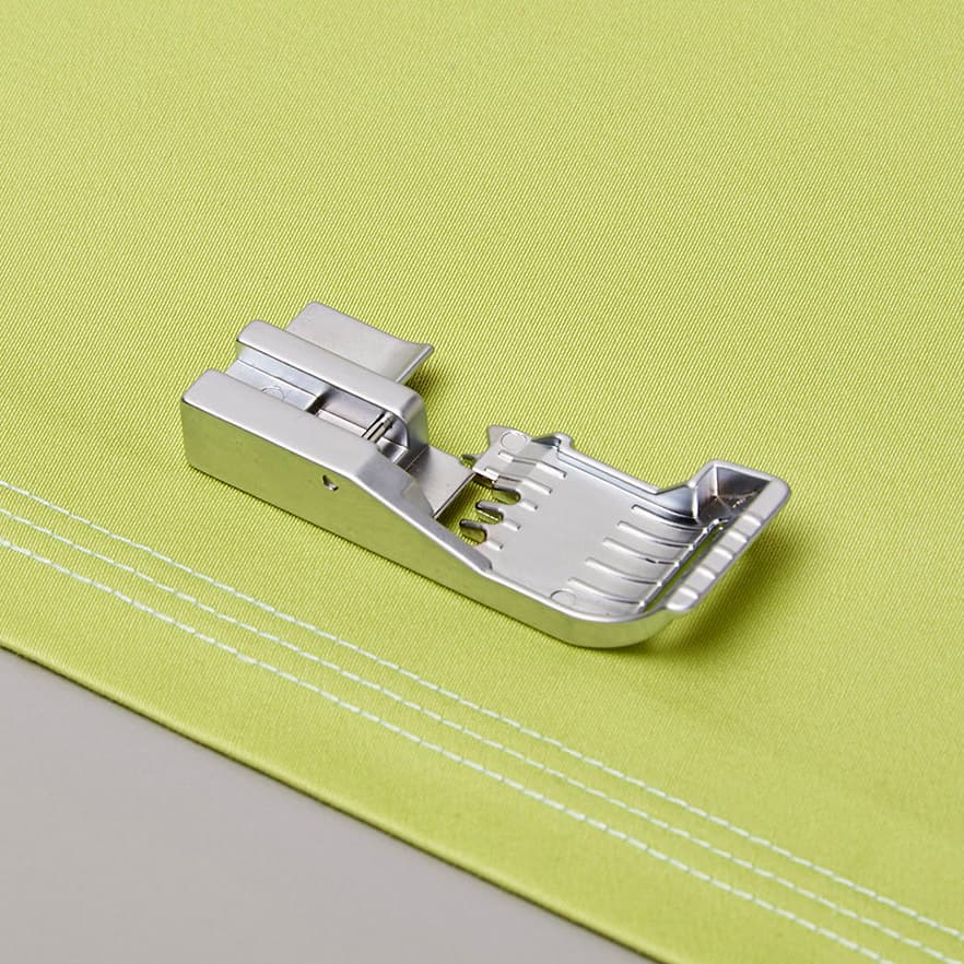 The Teflon sole foot moves smoother when it crosses over seams, especially on fabrics like vinyl. This foot is perfect for sticky surfaces such as vinyl, and faux leathers. It also glides smoothly on heavy fabrics like denim and fleece or projects with multiple layers. Download the instructions on how to use this foot here.