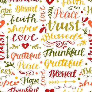 The Thankful, Grateful, Blessed Fabric is part of the Faith Fabric Collection printed by Sewing Parts Online. Printed on 100% cotton and measures 44-45" wide. Sew Creative Fabrics is only available through Sewing Parts Online, not sold in stores or anywhere else online. * Proudly Manufactured in Dickson, Tennessee USA! *