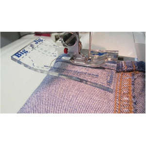 The Big Jig is used to level your presser foot while sewing over thick seams such as belt loops and hems as well as starting seams on lighter, more delicate fabrics. With its easy grasp design and longer sewing groove, The Big Jig is out performing other stabilizer plates on the market.