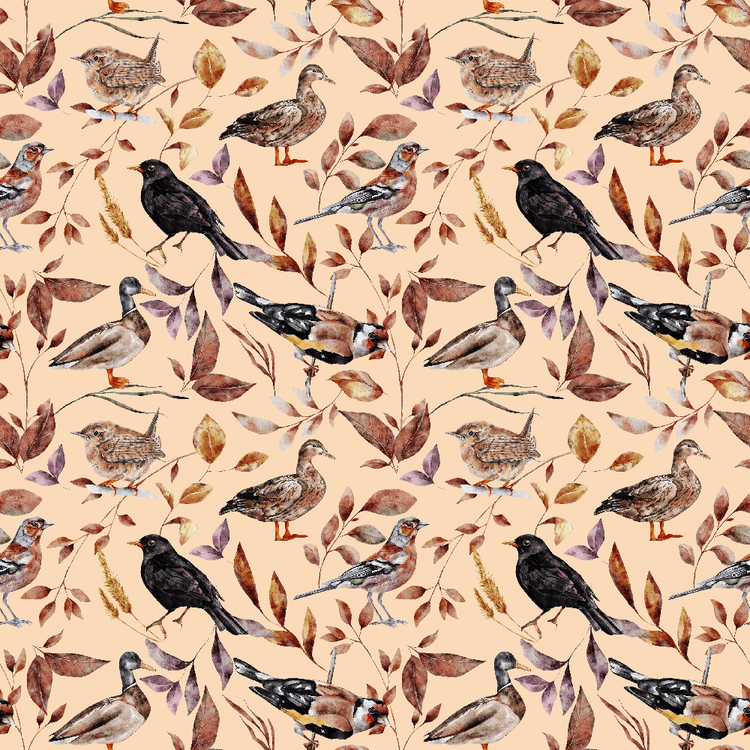 The Pizazz Peach The Cottage Birds and Leaves Fabric is part of The Cottage Fabric Collection printed by Sew Creative Fabrics. Digitally Printed on 100% cotton.