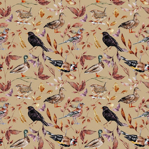 The Tan The Cottage Birds and Leaves Fabric is part of The Cottage Fabric Collection printed by Sew Creative Fabrics. Digitally Printed on 100% cotton.