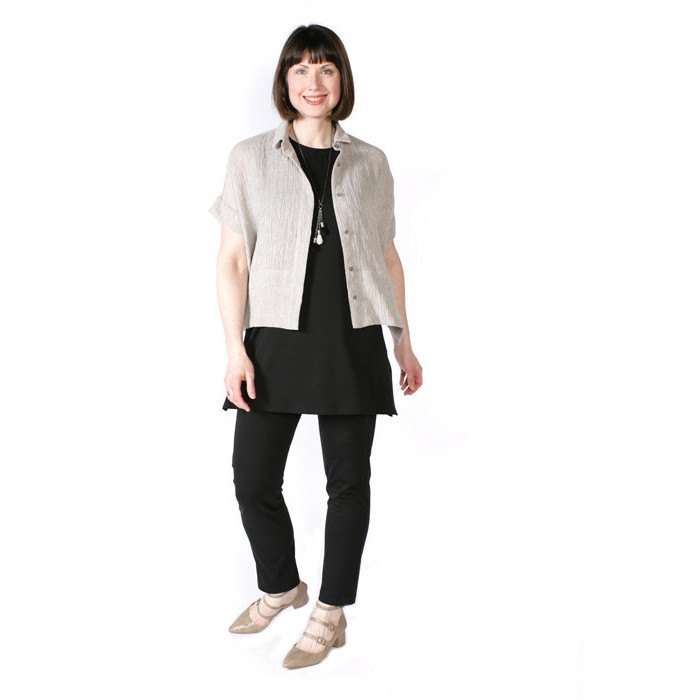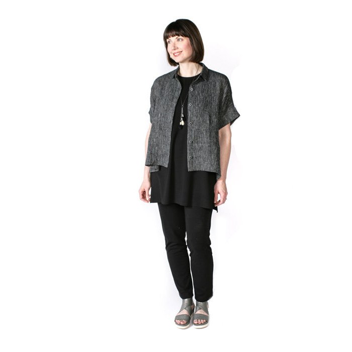 The Cottage Shirt Pattern makes a loose fitting top perfect for relaxing and camping. This free flow design features a tailored collar, back yoke, armhole bands, and exaggerated hems. The Cottage Shirt is made using six 1/2in buttons. Wear your Cottage Shirt open with layers underneath or buttoned. The Cottage Shirt Pattern can be made in the following sizes XS, S, M, L, XL, XXL.