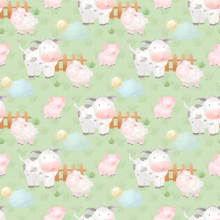 The Green The Cutest Little Farm Animals Fabric is part of the Cutest Little Farm Fabric Collection printed by Sew Creative Fabrics. Digitally Printed on 100% cotton.