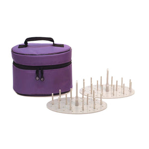 Looking for a more efficient way to store and carry your thread spools? Look no further than BlueFig's Thread Carrier Combo! Each combo includes one mini carry case (choose from seven fashionable patterns), two thread carrier trays, and 24 pins. Each tray is capable of holding up to twenty-four thread pins, depending on the size of the spool being used. Additional trays and pins can be purchased separately, and each Mini Carrier can hold up to two thread trays stacked together.