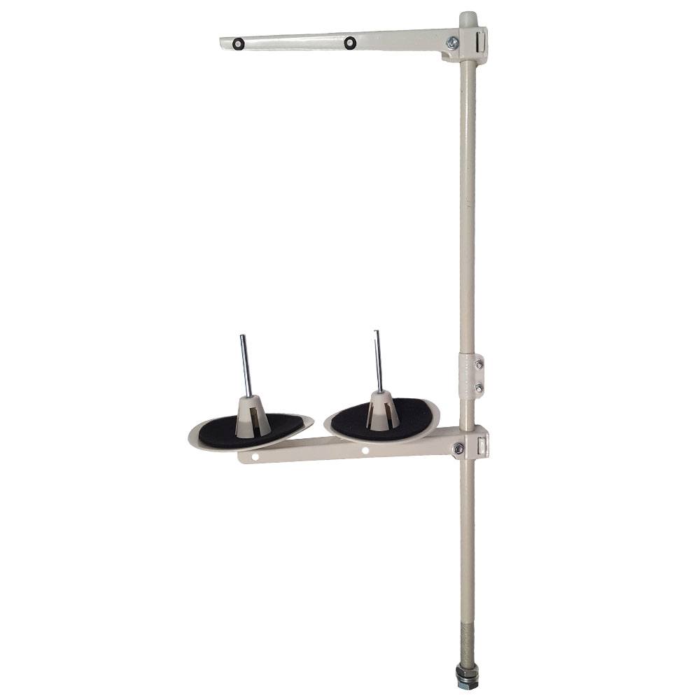 This thread stand is meant to be screwed into an industrial sewing machine table.