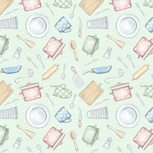 The Tossed Cooking Utensils In The Kitchen Fabric is part of the Kitten In The Kitchen Fabric Collection printed by Sewing Parts Online. Digitally Printed on 100% cotton.