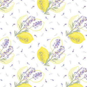 The Tossed Lavender & Lemons Fabric is a part of the Lovely Lavender & Lemons Fabric Collection printed by Sew Creative Fabrics. Digitally Printed on 100% cotton and measures 42-43" wide.