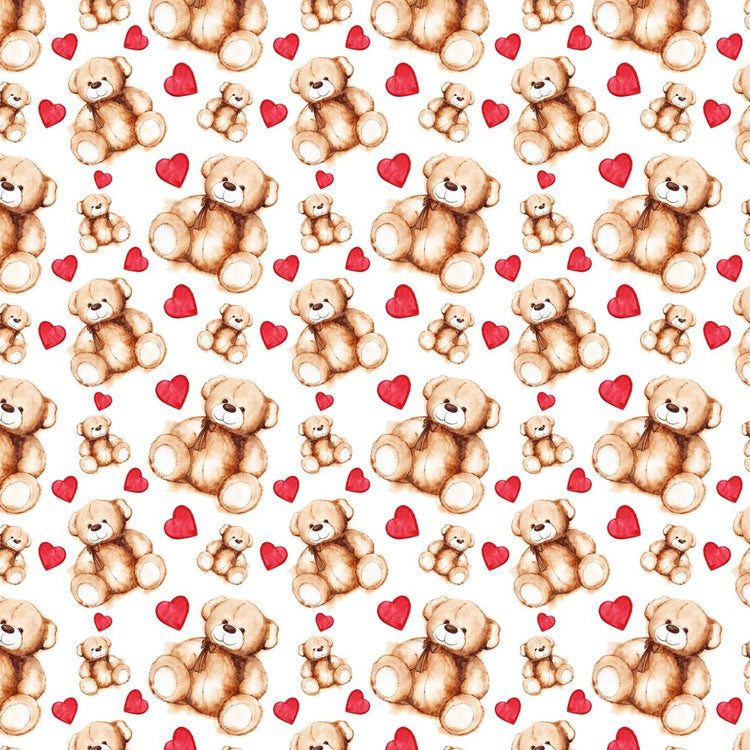 The Tossed Lovely Teddy Bear & Hearts Fabric is a part of the Lovely Teddy Bear Fabric Collection printed by Sew Creative Fabrics. Digitally Printed on 100% cotton and measures 42-43" wide.