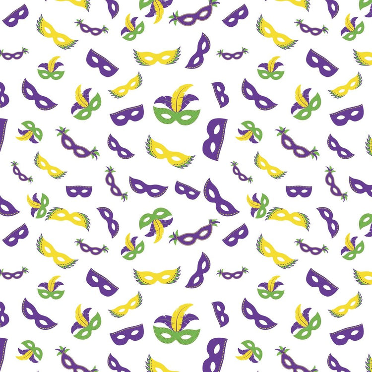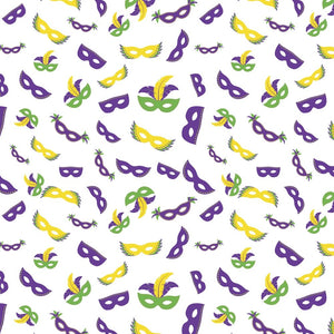 The Tossed Mardi Gras Mask Fabric is part of the Mardi Gras Fabric Collection printed by Sew Creative Fabrics. Digitally Printed on 100% cotton.