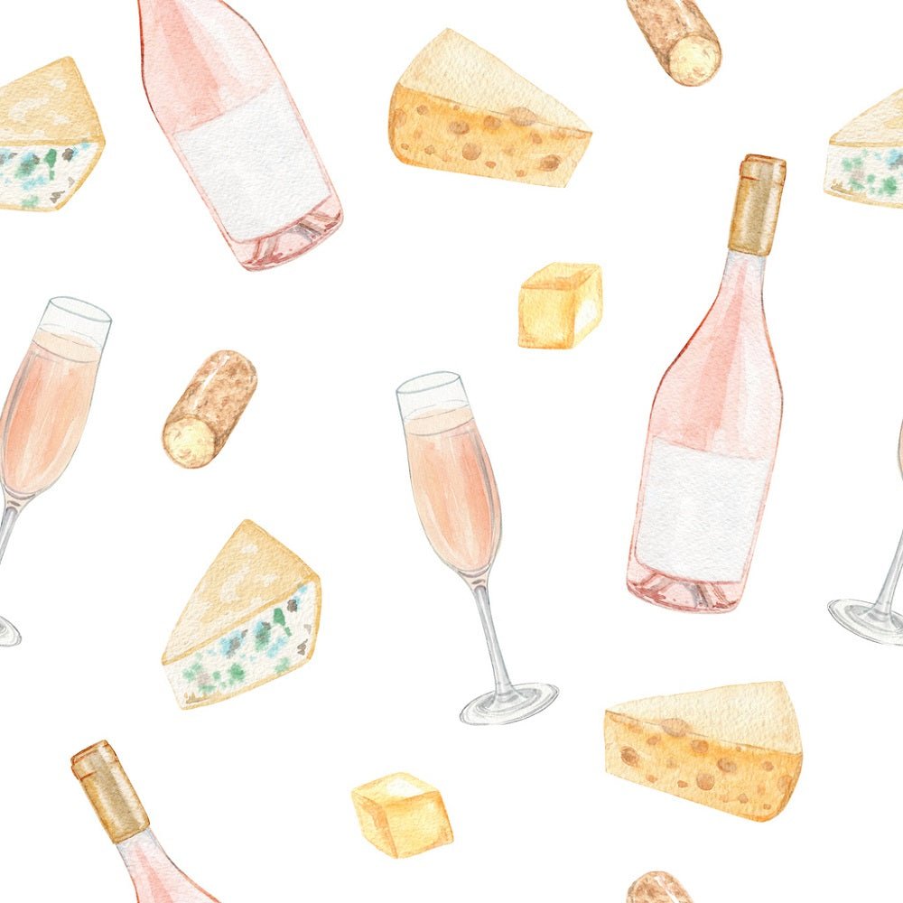 Tossed Rose Wine & Cheese Fabric - White