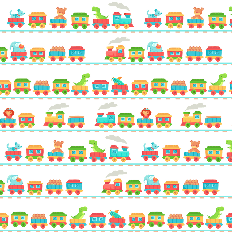 The Toy Train Ride Fabric is part of the Kid's Playtime Fabric Collection printed by Sew Creative Fabrics. Digitally Printed on 100% cotton.
