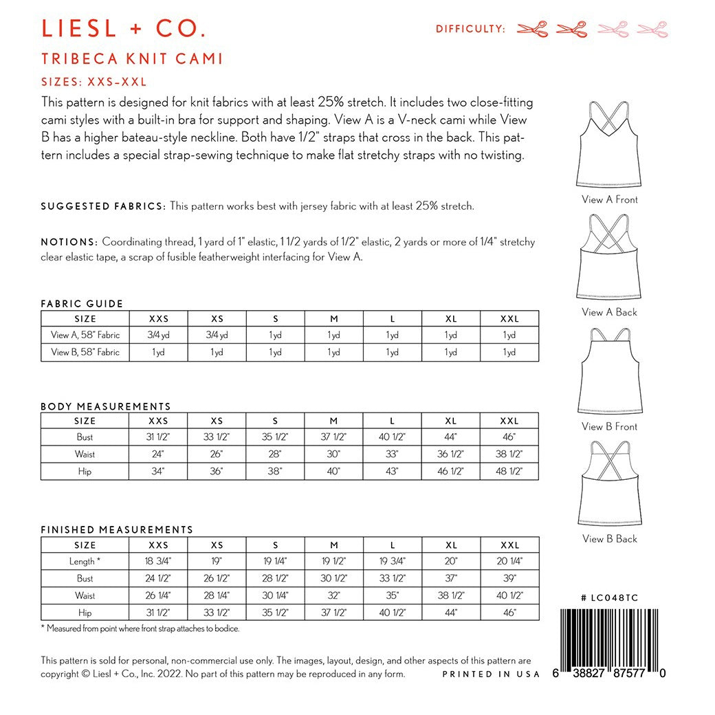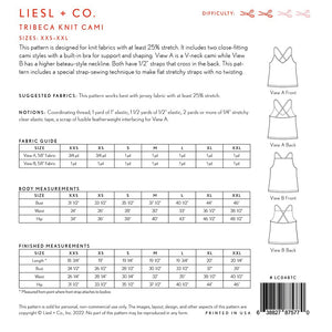 Tribeca Knit Cami Pattern, Liesl & Co. Details