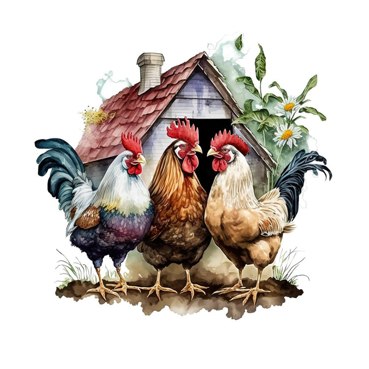 Trio Of Chickens Fabric Panel