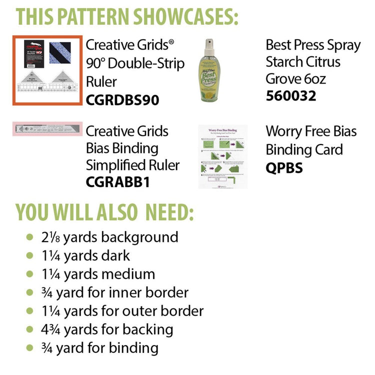 Create your own Tropical Blues Quilt with this pattern from Cut Loose Press. Completed, the quilt measures 69 inches by 80 inches, an ideal size for a lap or throw quilt. The Tropical Blues Quilt Pattern requires the use of the Creative Grids 90-degree Double-Strip Ruler (CGRDBS90) and Bias Binding Simplified Ruler (CGRABB1).