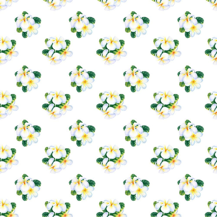 The Tropical Plumeria Frangipani Fabric is part of the Watercolor Cute Safari Animals Fabric Collection printed by Sew Creative Fabrics. Digitally Printed on 100% cotton.
