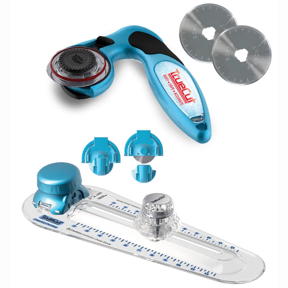Cutting just got a little easier with Grace's TrueCut Cutter Combo. The TrueCut Cutter Combo is a good gift idea for beginners and professionals. This kit includes a 45 mm My Comfort Cutter, the TrueCut 360 Circle Cutter, and two replacement blades for each knife. These tools help make it possible to get precise, straight lines every time.