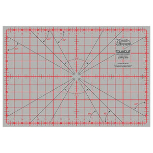 Grace's cutting mats are self-healing and have a center core made of a five-layer PVC plastic, allowing the cuts to self-heal faster and keep the working surface smooth. These double-sided mats include angle reference guidelines, a guide for bias strip cutting, and easy-to-see colors.