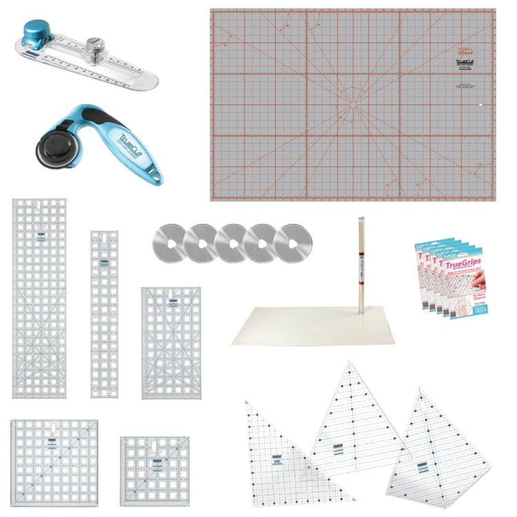 TrueCut's Ultimate Cutting Collection can be used for all your cutting needs. This collection includes several things you might need for your projects, from straight cuts to circle cuts and every shape in between. This collection is completed with grip aids and replacement blades.