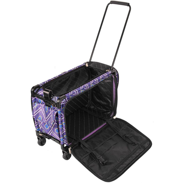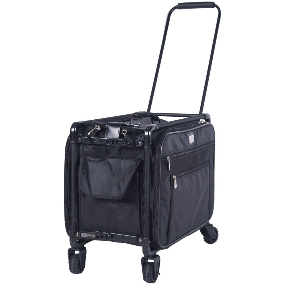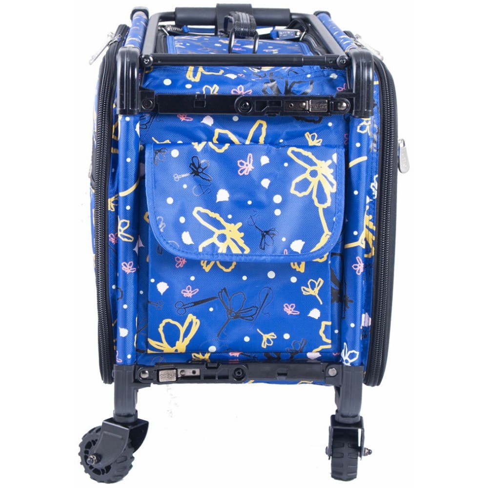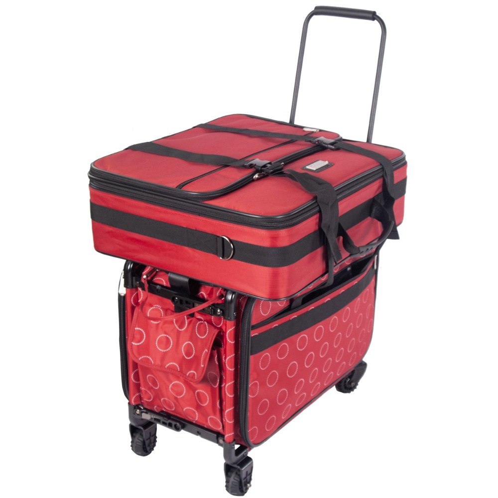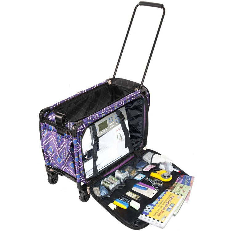 These versatile carrying cases are ideal for sewists on-the-go as well as travelers. Measuring 22in long by 15in high by 12in deep, this wheeled case is ideal for storing and transporting sewing machines. When your Tutto case is not in use it can be folded up for easy storage. The sturdy frame protects your machine and equipment. All your notions, sewing supplies, and tools can be carried with your machine in the many side pockets. Easily access your sewing machine from the top or side of the case. Tutto cases make perfect sewing machine cases, overnight bags, brief cases, or computer bags.