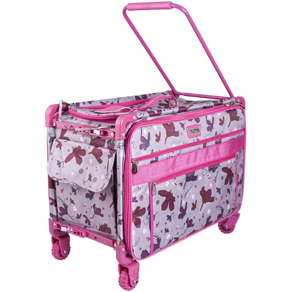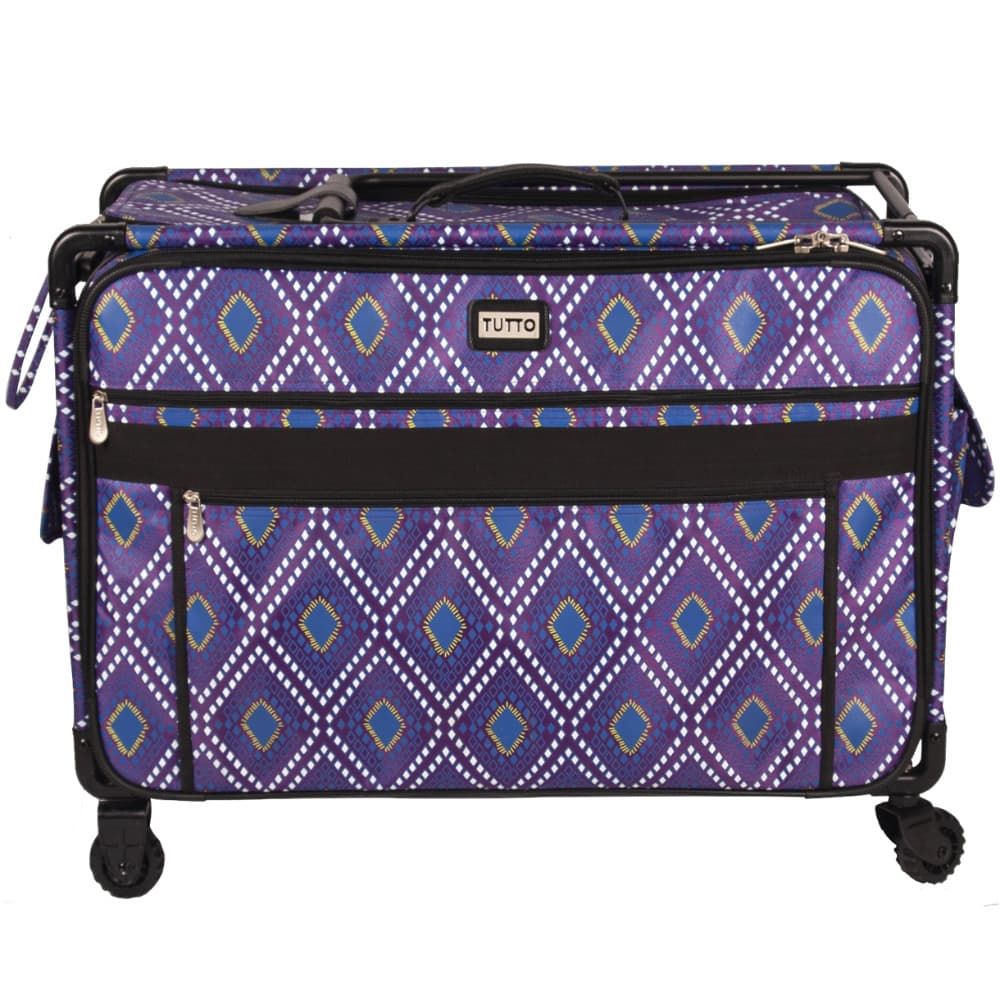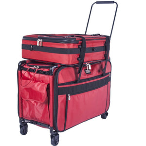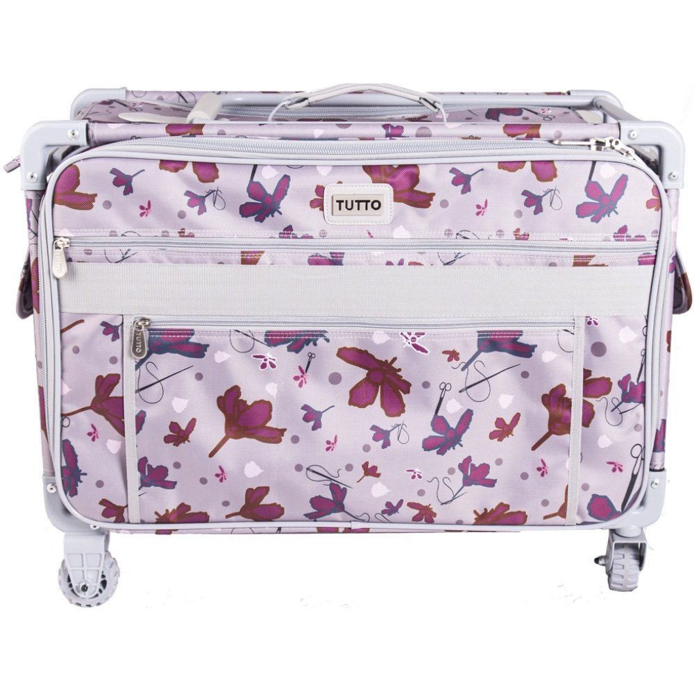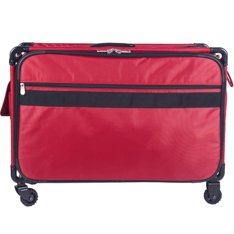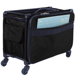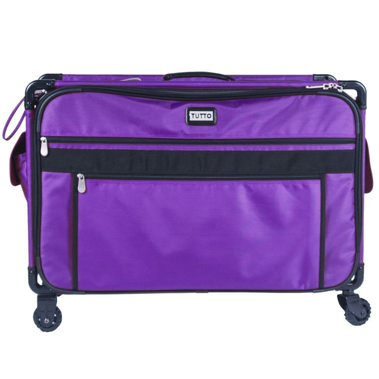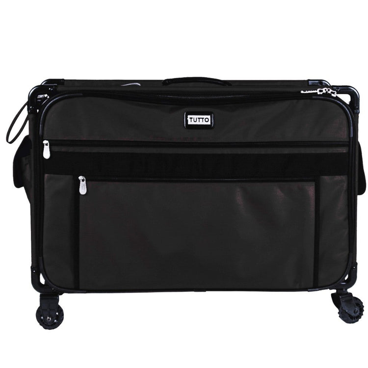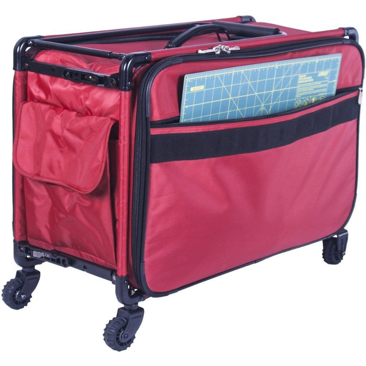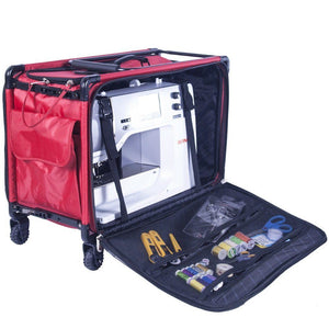 These versatile carrying cases are ideal for sewists on the go as well as travelers. Measuring 28" long by 18" high by 14" deep, this wheeled case is perfect for storing and transporting heavy-duty sewing machines. When your Tutto case is not in use, it can be folded up for easy storage. The sturdy frame protects your machine and equipment. All your notions, sewing supplies, and tools can be carried with your machine in the many side pockets. Easily access your sewing machine from the top or side of the case. Tutto cases make perfect sewing machine cases, overnight bags, briefcases, or computer bags.