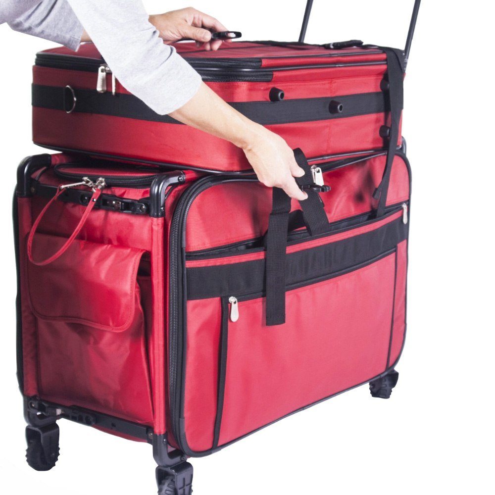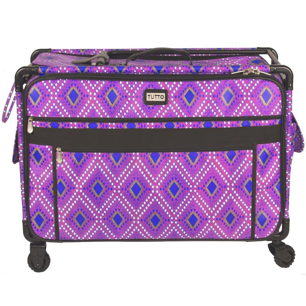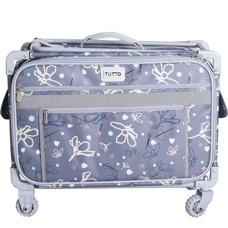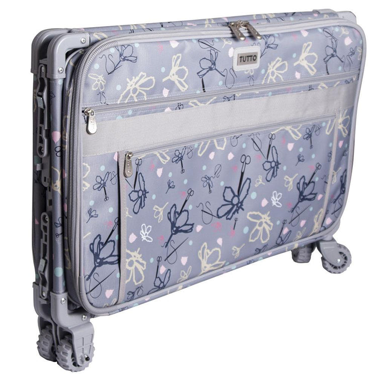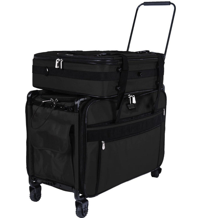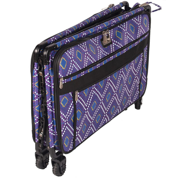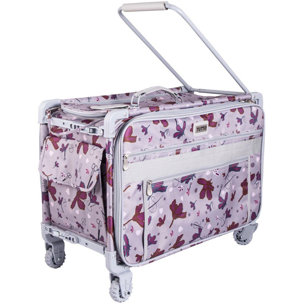 These versatile carrying cases are ideal for sewists on the go as well as travelers. Measuring 28" long by 18" high by 14" deep, this wheeled case is perfect for storing and transporting heavy-duty sewing machines. When your Tutto case is not in use, it can be folded up for easy storage. The sturdy frame protects your machine and equipment. All your notions, sewing supplies, and tools can be carried with your machine in the many side pockets. Easily access your sewing machine from the top or side of the case. Tutto cases make perfect sewing machine cases, overnight bags, briefcases, or computer bags.