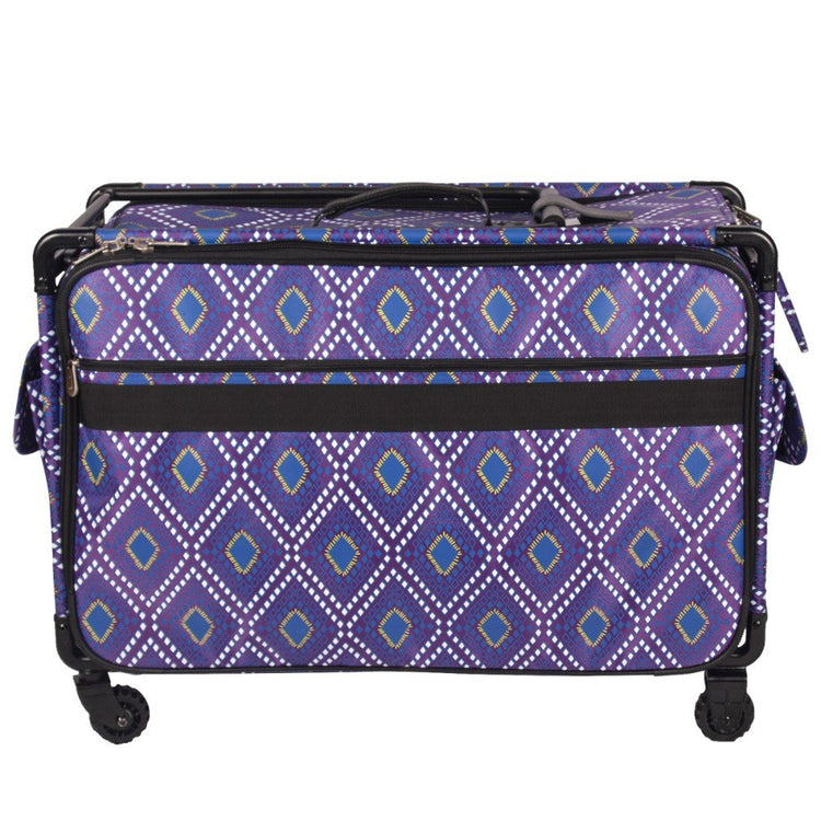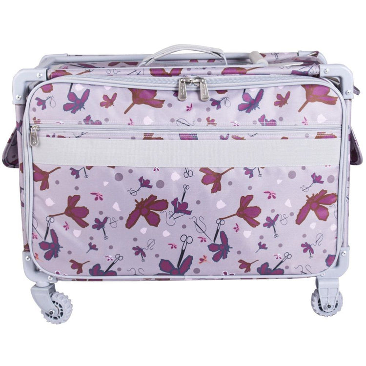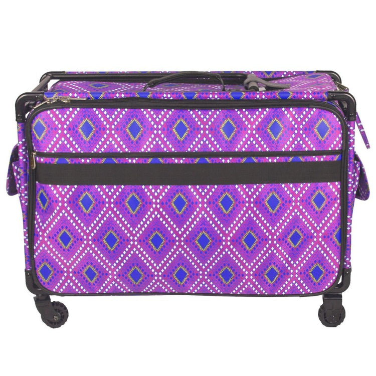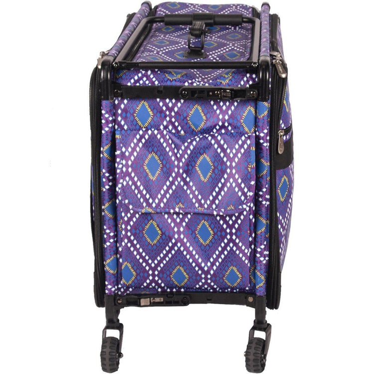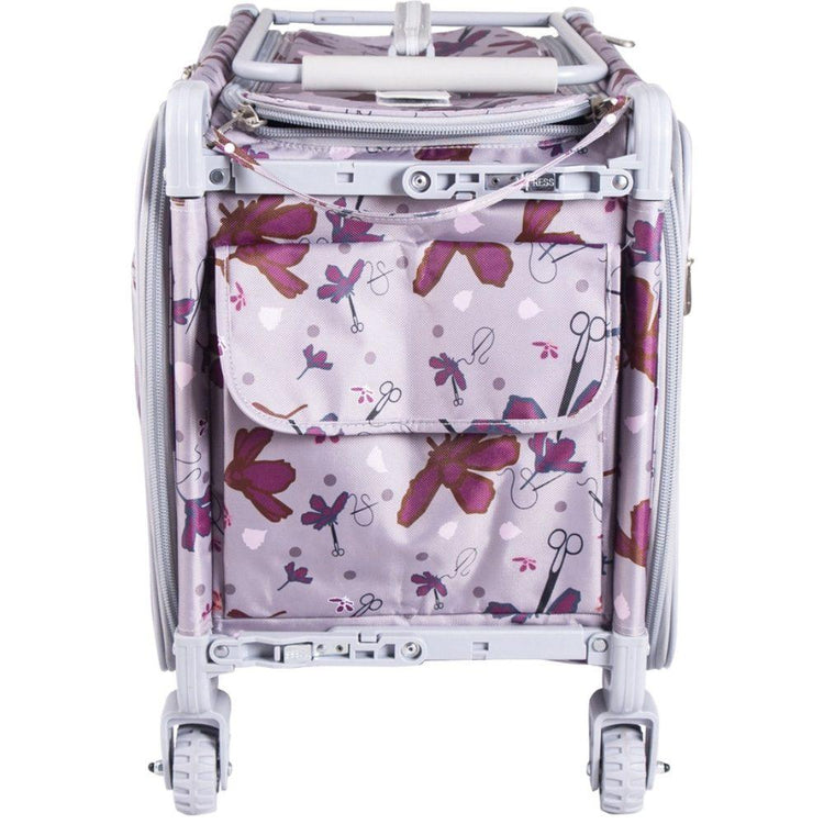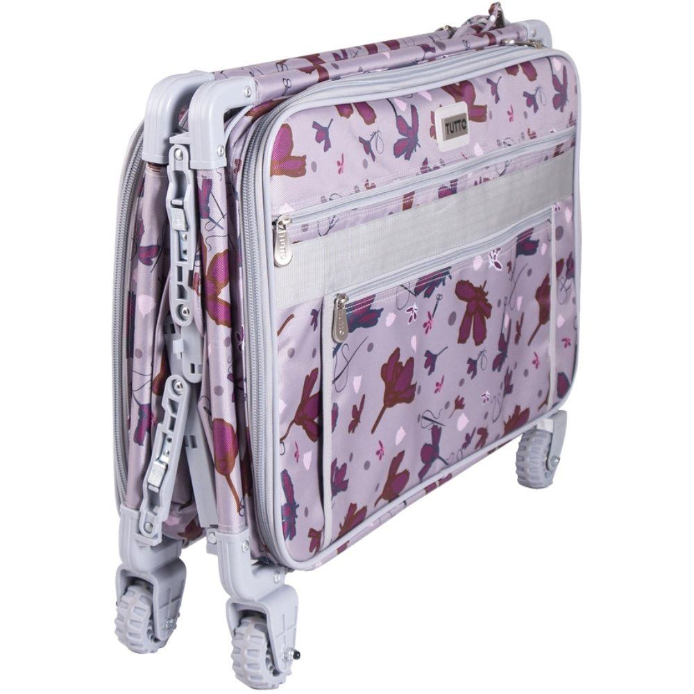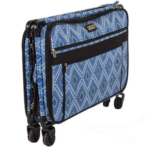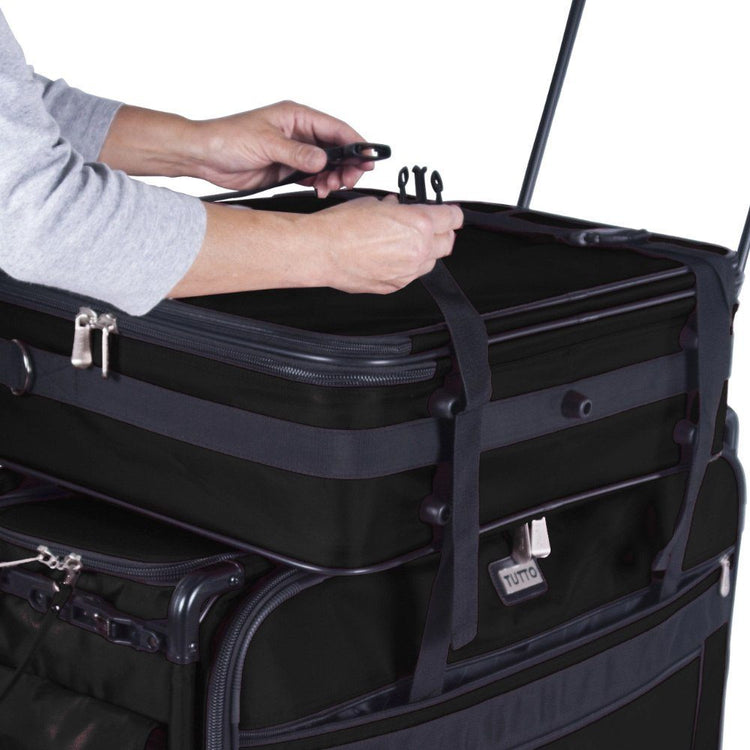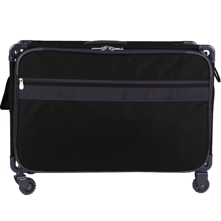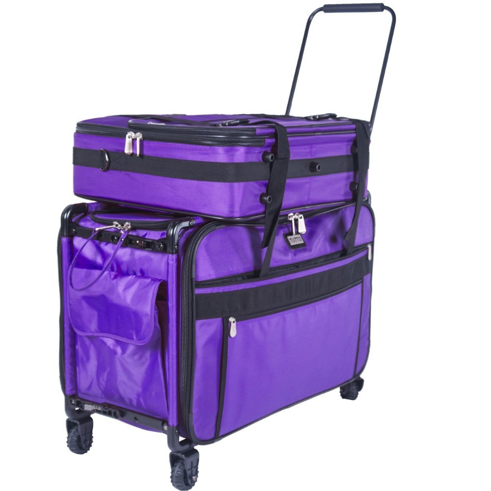These versatile carrying cases are ideal for sewists on the go as well as travelers. Measuring 28" long by 18" high by 14" deep, this wheeled case is perfect for storing and transporting heavy-duty sewing machines. When your Tutto case is not in use, it can be folded up for easy storage. The sturdy frame protects your machine and equipment. All your notions, sewing supplies, and tools can be carried with your machine in the many side pockets. Easily access your sewing machine from the top or side of the case. Tutto cases make perfect sewing machine cases, overnight bags, briefcases, or computer bags.