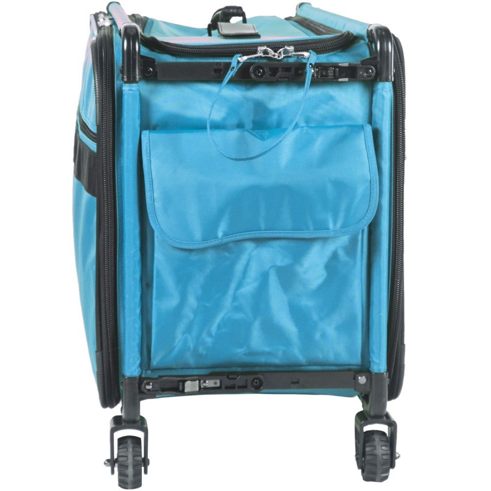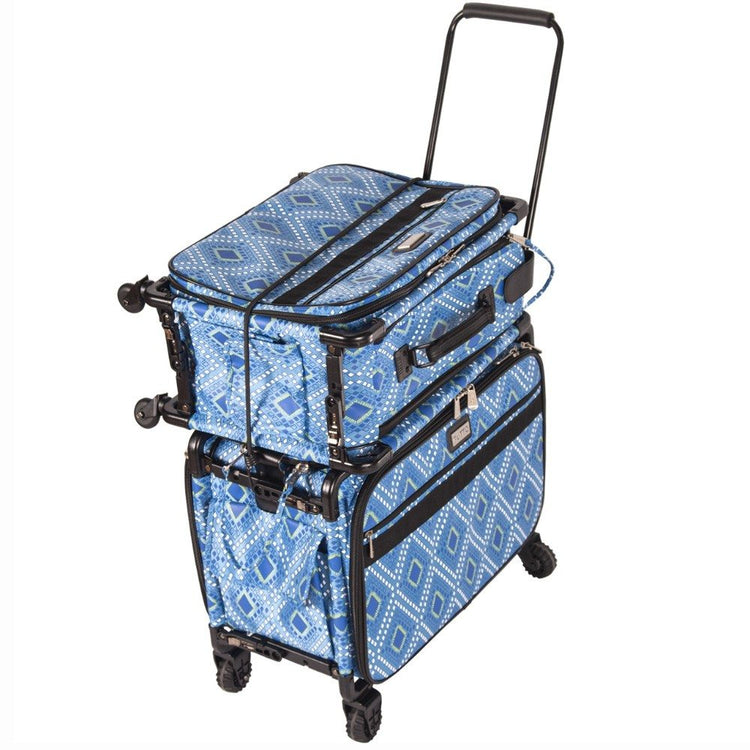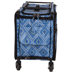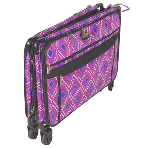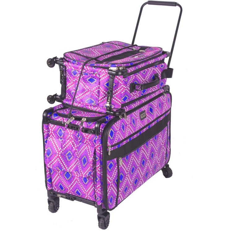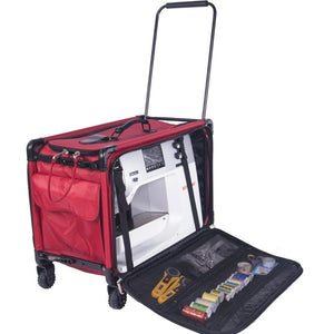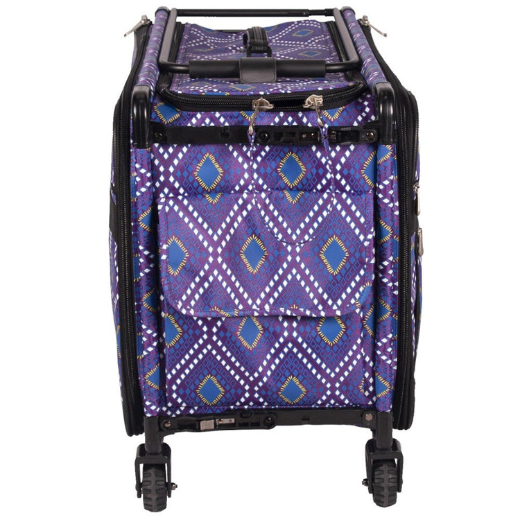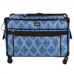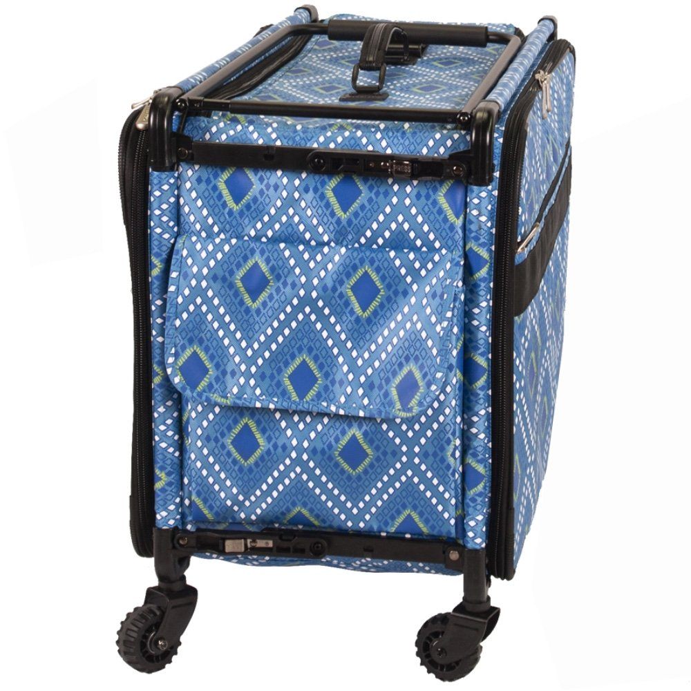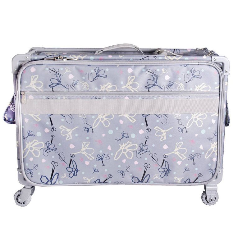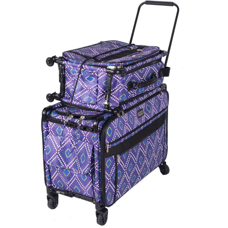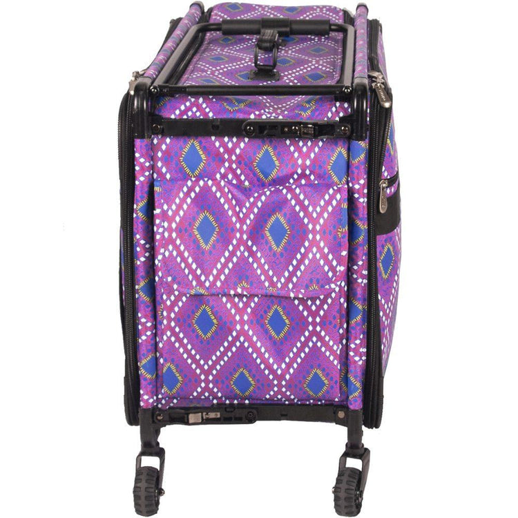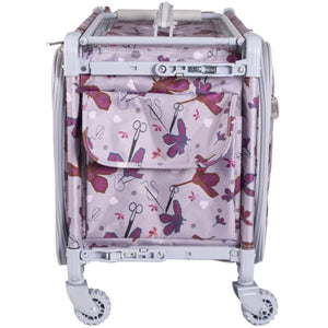 These versatile carrying cases are ideal for sewists on the go as well as travelers. Measuring 28" long by 18" high by 14" deep, this wheeled case is perfect for storing and transporting heavy-duty sewing machines. When your Tutto case is not in use, it can be folded up for easy storage. The sturdy frame protects your machine and equipment. All your notions, sewing supplies, and tools can be carried with your machine in the many side pockets. Easily access your sewing machine from the top or side of the case. Tutto cases make perfect sewing machine cases, overnight bags, briefcases, or computer bags.