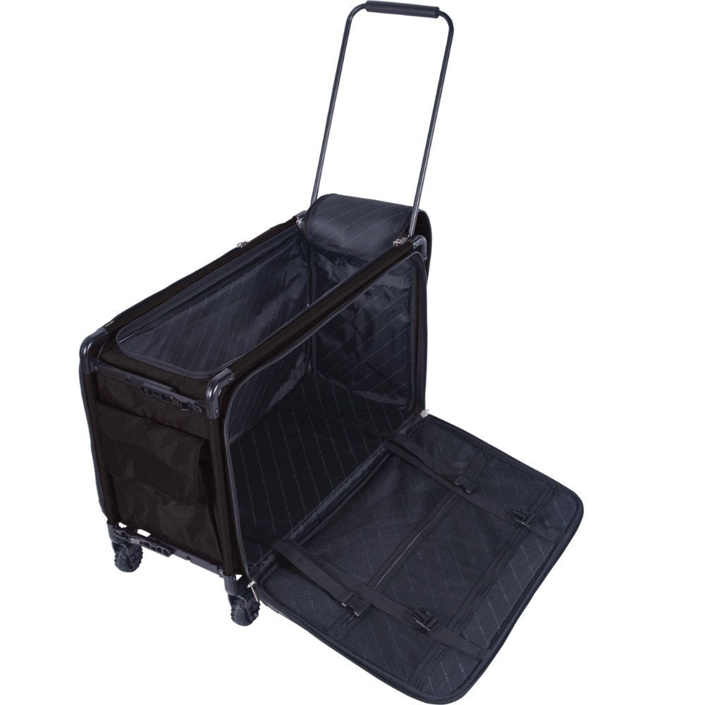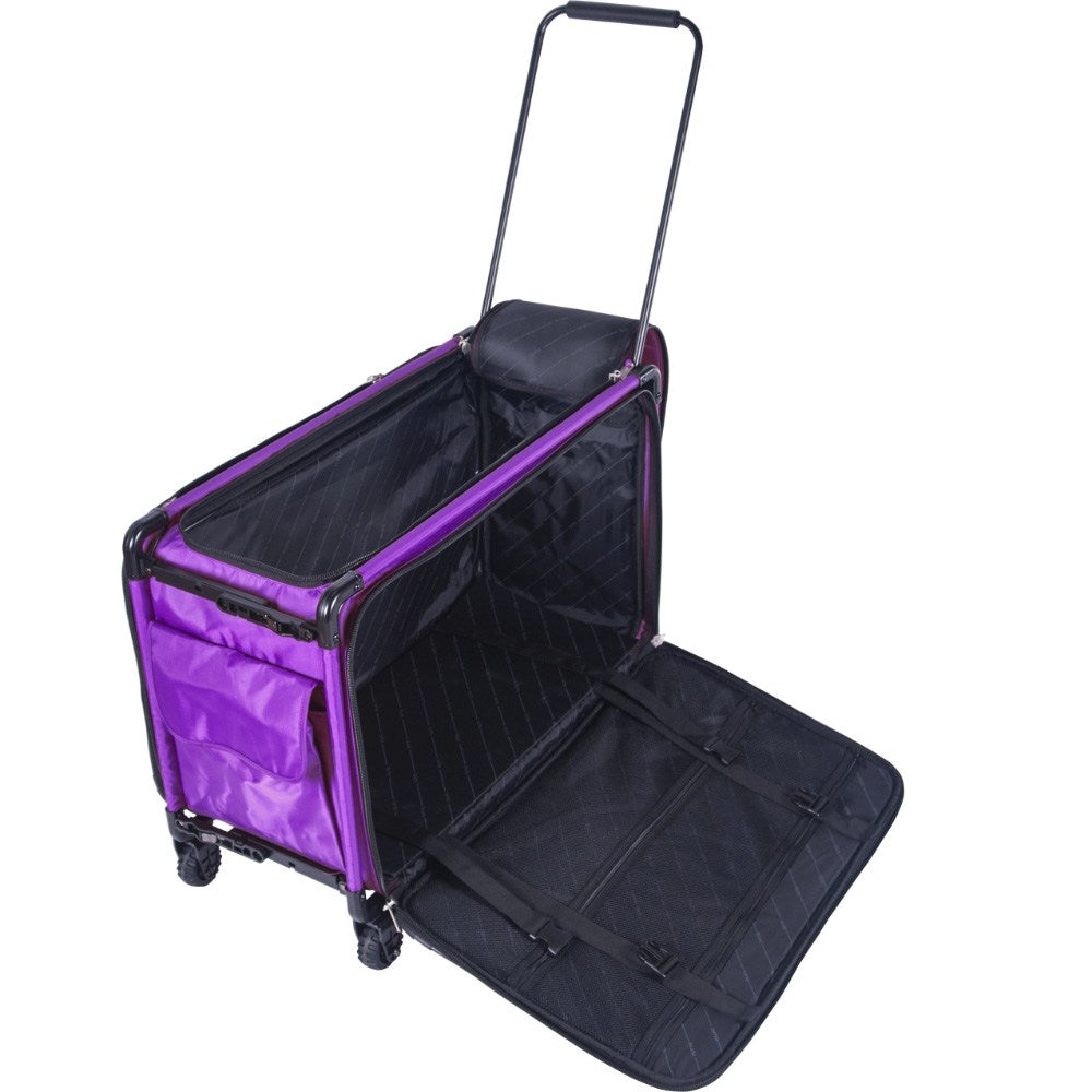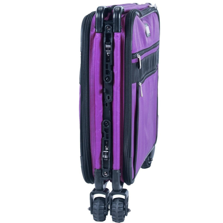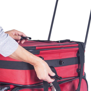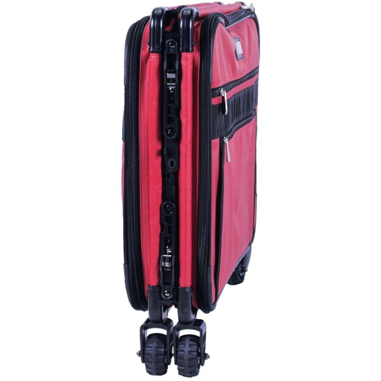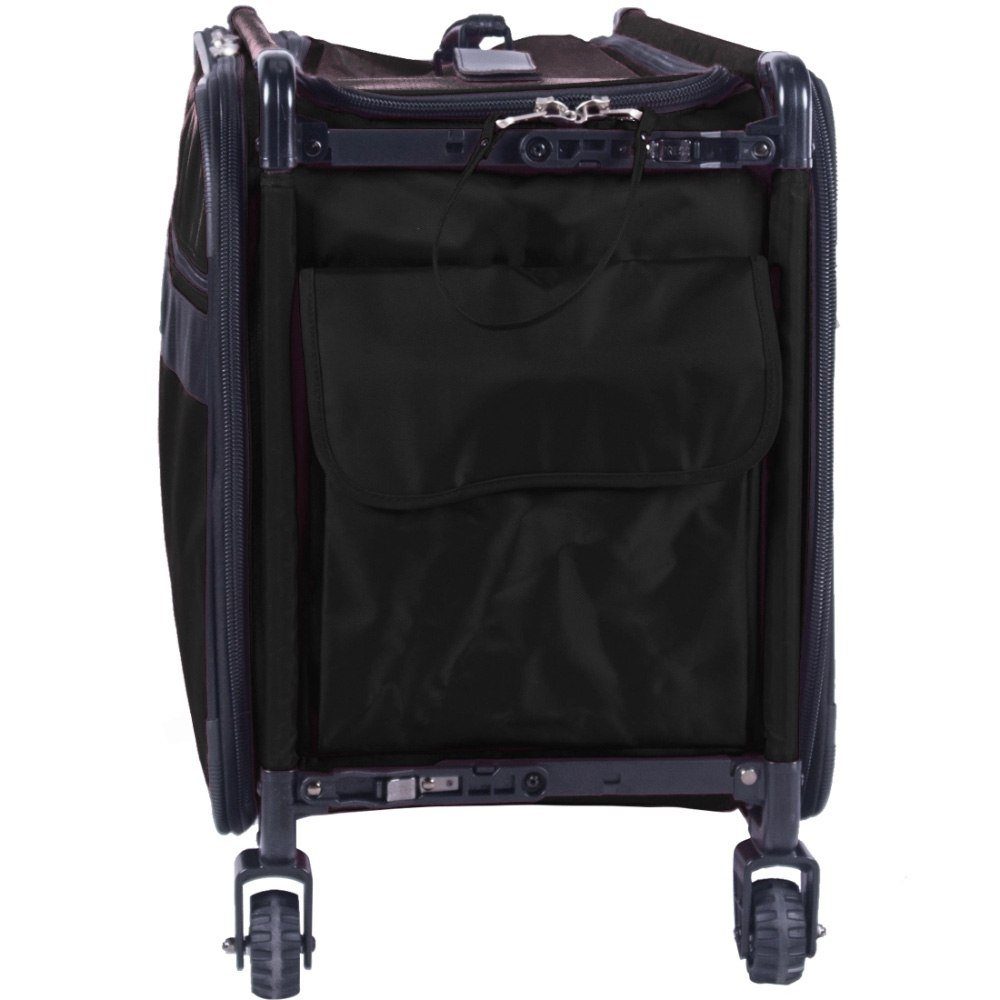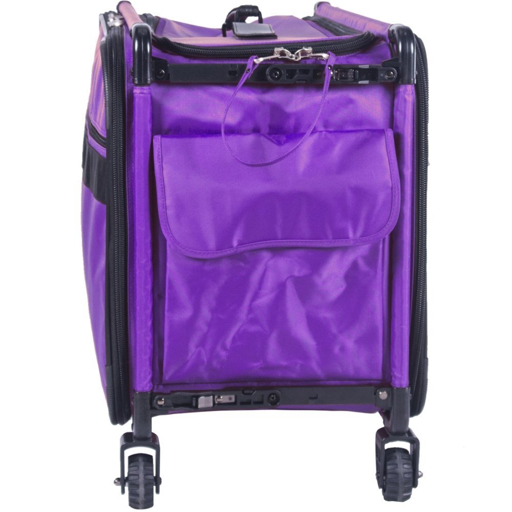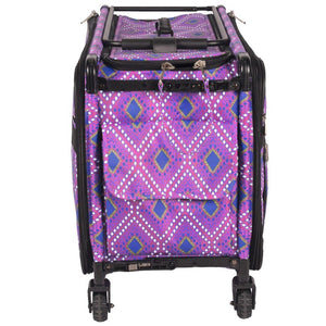 These versatile carrying cases are ideal for sewists on the go as well as travelers. Measuring 28" long by 18" high by 14" deep, this wheeled case is perfect for storing and transporting heavy-duty sewing machines. When your Tutto case is not in use, it can be folded up for easy storage. The sturdy frame protects your machine and equipment. All your notions, sewing supplies, and tools can be carried with your machine in the many side pockets. Easily access your sewing machine from the top or side of the case. Tutto cases make perfect sewing machine cases, overnight bags, briefcases, or computer bags.
